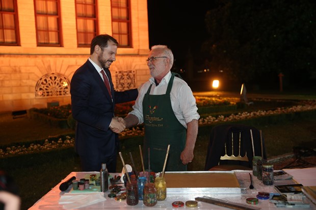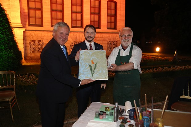 - Yemekte ayrıca dünyaca ünlü ebru sanatçısı Hikmet Barutçugil misafirler için bir sunum gerçekleştirdi. Albayrak, Barutçugil'in sunumu sırasında yaptığı ebru çalışmasını 22. Dünya Petrol Kongresi anısı olarak Toth'a hediye etti.
